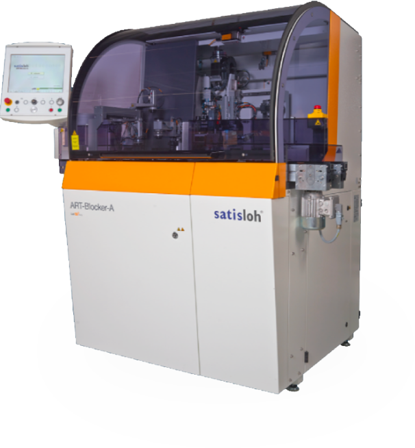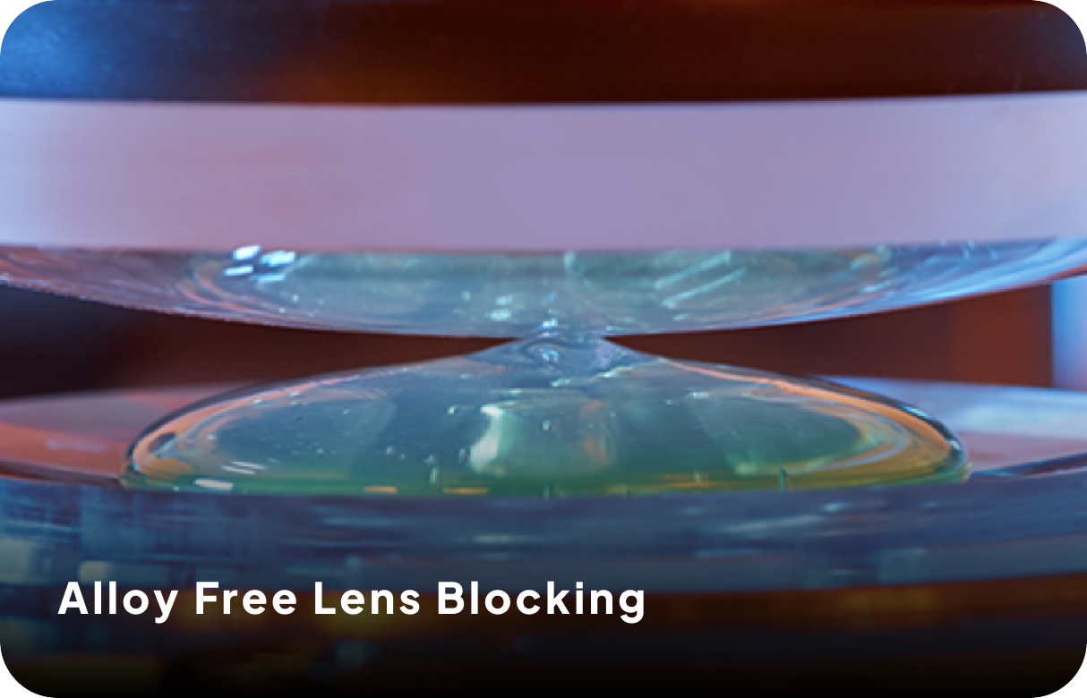 Alloy-free blocking with uv-curable adhesive. Processes up to 100 lenses/hour for all standard organic materials, photochromic and polarized blanks.